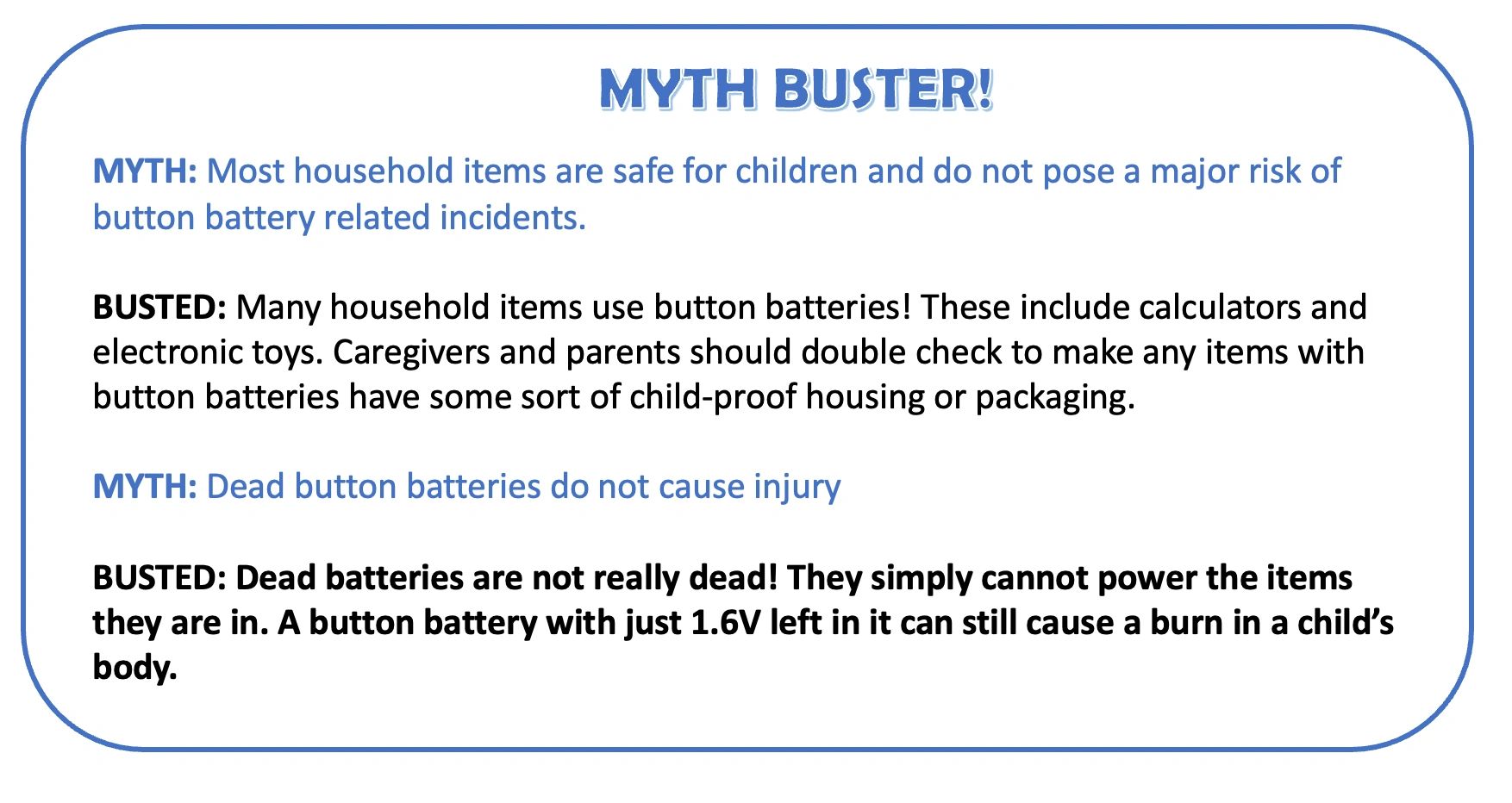 Within the household, there are many ways that caregivers can lower the chances of button battery incidents.