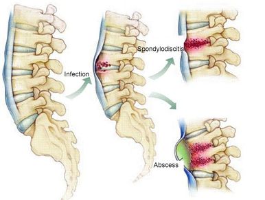 Spondylodiscitis is an infection of a disc that is between two pieces of your child’s spine, and the pieces of the spine that are surrounding it (vertebrae).