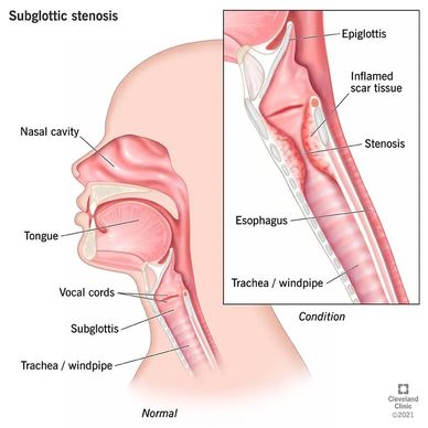 Tracheal stenosis is the abnormal narrowing of the trachea that makes it harder to breathe. This is usually due to swelling and scar tissue in the area.